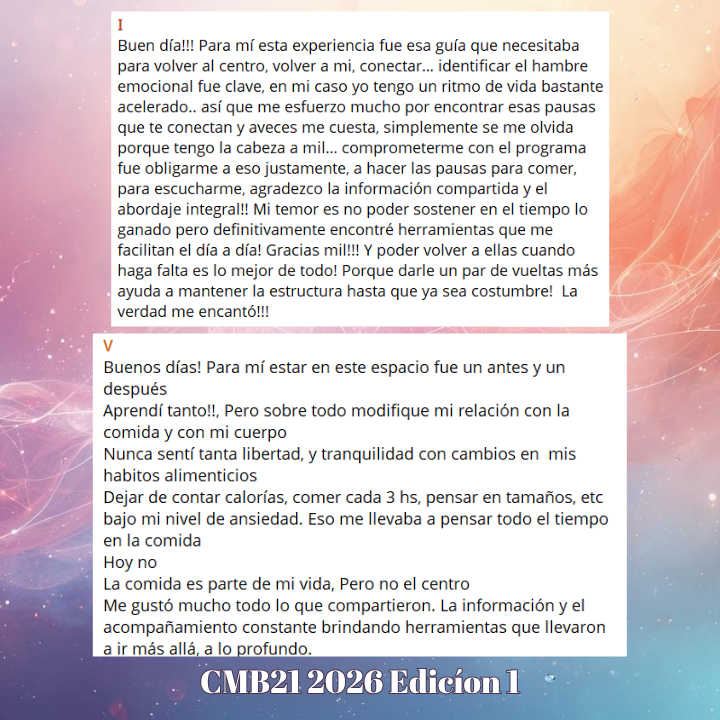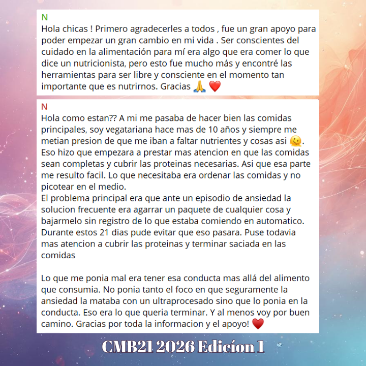 CMB21 2026 Edición II es un programa integral que empieza y termina en 21 días, con seguimiento diario en grupo para que no estés sola.