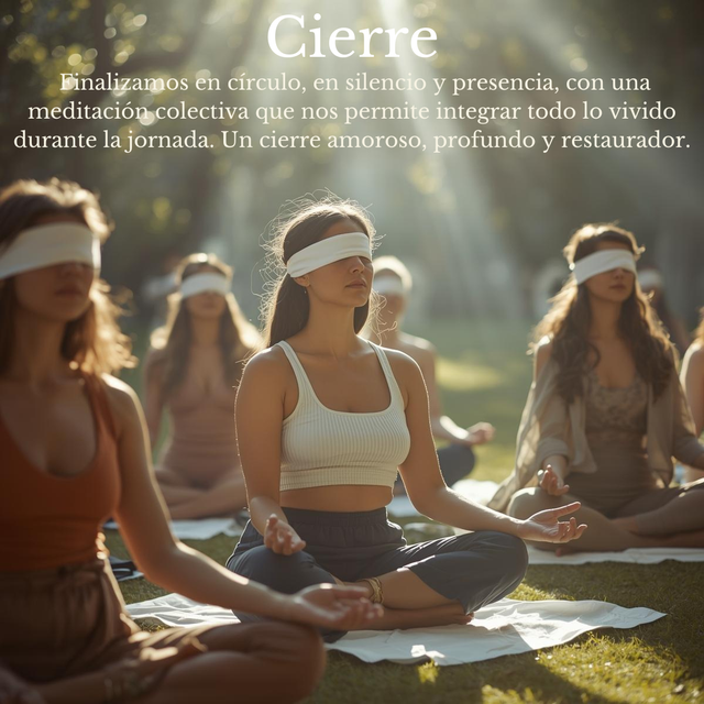 Finalizamos en círculo, en silencio y presencia, con una meditación colectiva que nos permite integrar todo lo vivido durante la jornada. Un cierre amoroso, profundo y restaurador.